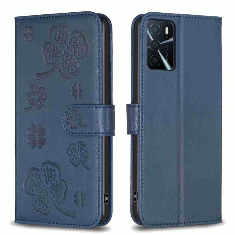 For OPPO A16 / A16s / A54s Four-leaf Embossed Leather Phone Case(Blue)