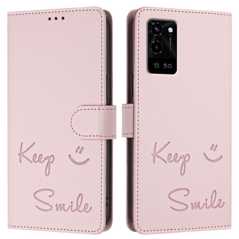Για OPPO A16 / A16s / A55s 5G Χαμόγελο ανάγλυφο RFID δερμάτινη θήκη τηλεφώνου (ροζ)