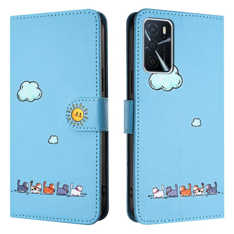 Θήκη τηλεφώνου από δέρμα με σχέδια καρτούν γάτας για OPPO A16 / A16s (Κόκκινο)
