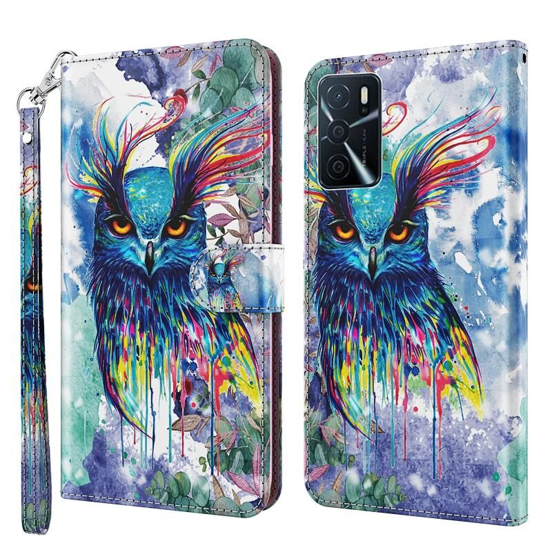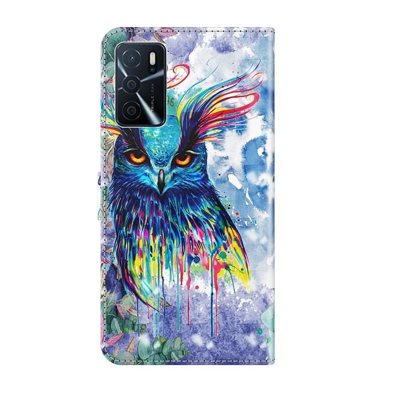 Θήκη τηλεφώνου για OPPO A16 / A54 5G, από TPU + Δερματίνη PU με σχέδιο 3D ζωγραφικής (Γεράκι σε Ακουαρέλα)