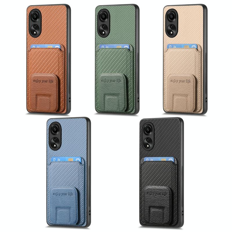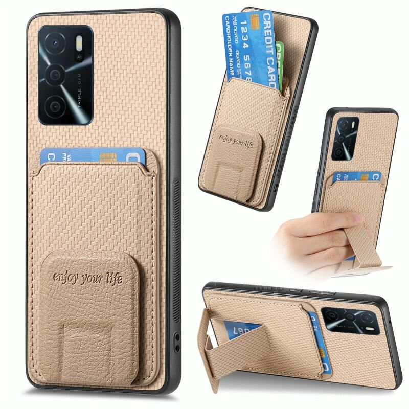 Θήκη για OPPO A16 Carbon Fiber με Κάρτες & Στήριξη (Χακί)