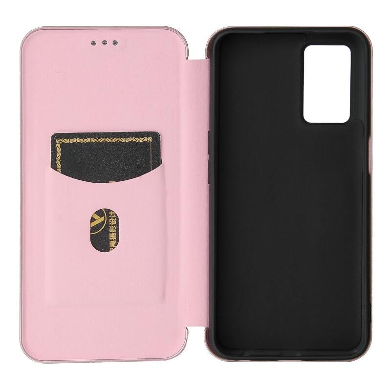 Για OPPO A16 Carbon Fiber υφή οριζόντια Flip TPU + PC + PU δερμάτινη θήκη με υποδοχή κάρτας (ρόζ)