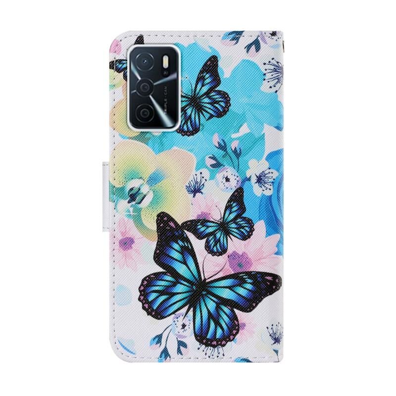Θήκη τηλεφώνου από δέρμα με πολύχρωμο σχέδιο για OPPO A16 (Πεταλούδα Μωβ)