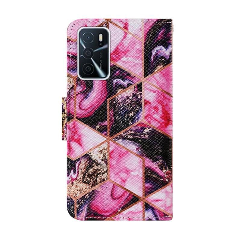 Θήκη τηλεφώνου από δέρμα με πολύχρωμο σχέδιο για OPPO A16 (Μαύρο Μάρμαρο)