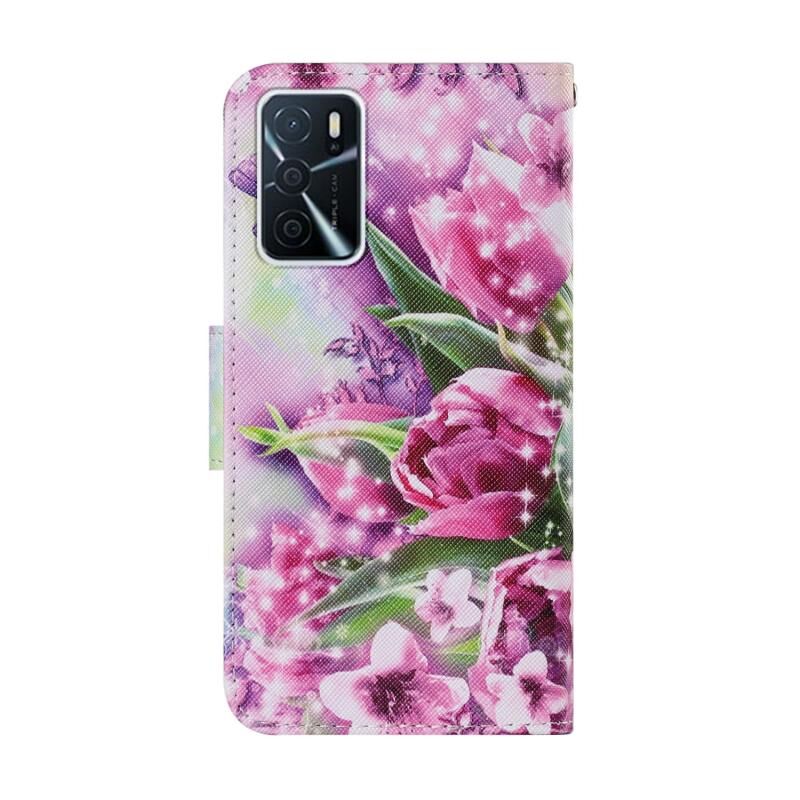 Θήκη τηλεφώνου από δέρμα με πολύχρωμο σχέδιο ζωγραφικής για OPPO A16 (κόκκινο)