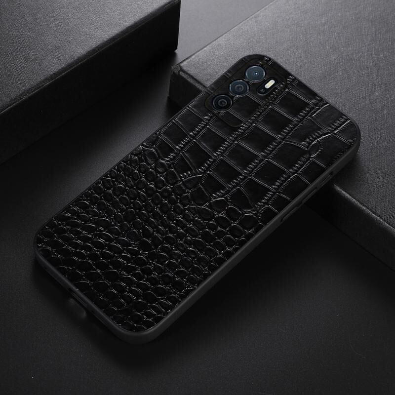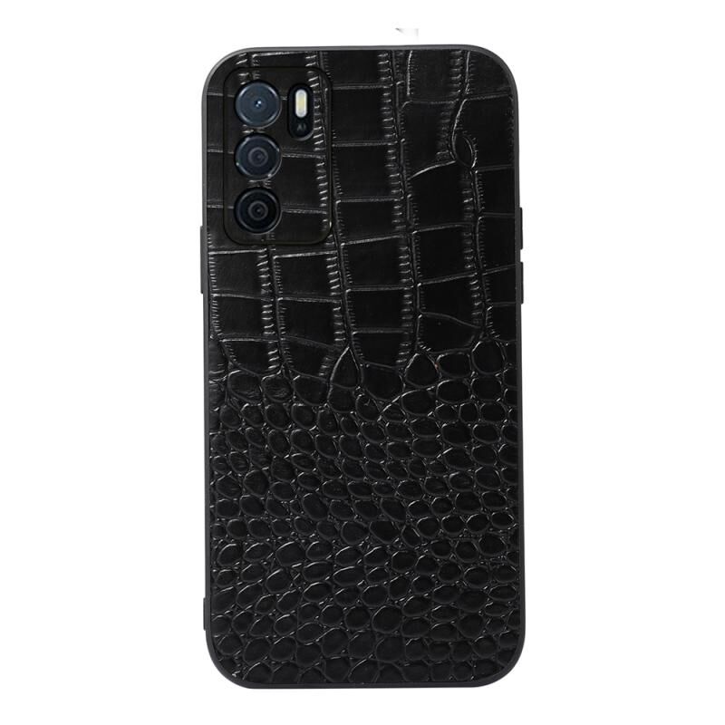 Θήκη τηλεφώνου από γνήσιο δέρμα αγελάδας με επικάλυψη κροκόδειλου για OPPO A16 (Κυανό Μπλε)