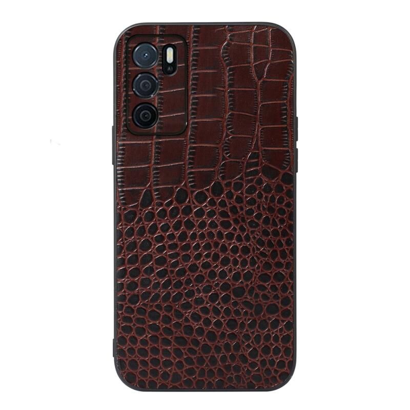 Θήκη τηλεφώνου από γνήσιο δέρμα αγελάδας με επικάλυψη κροκόδειλου για OPPO A16 (Καφέ)