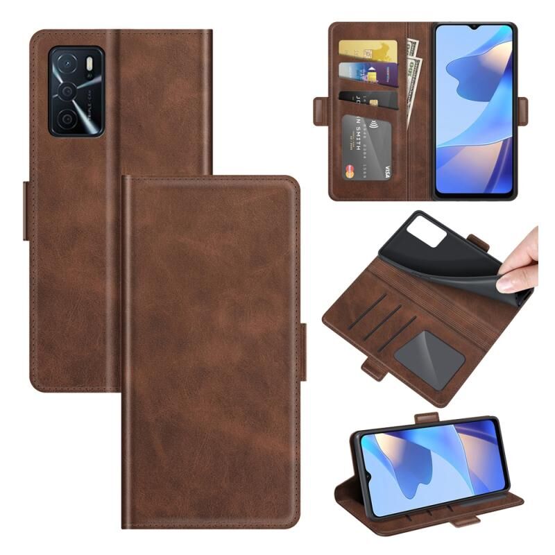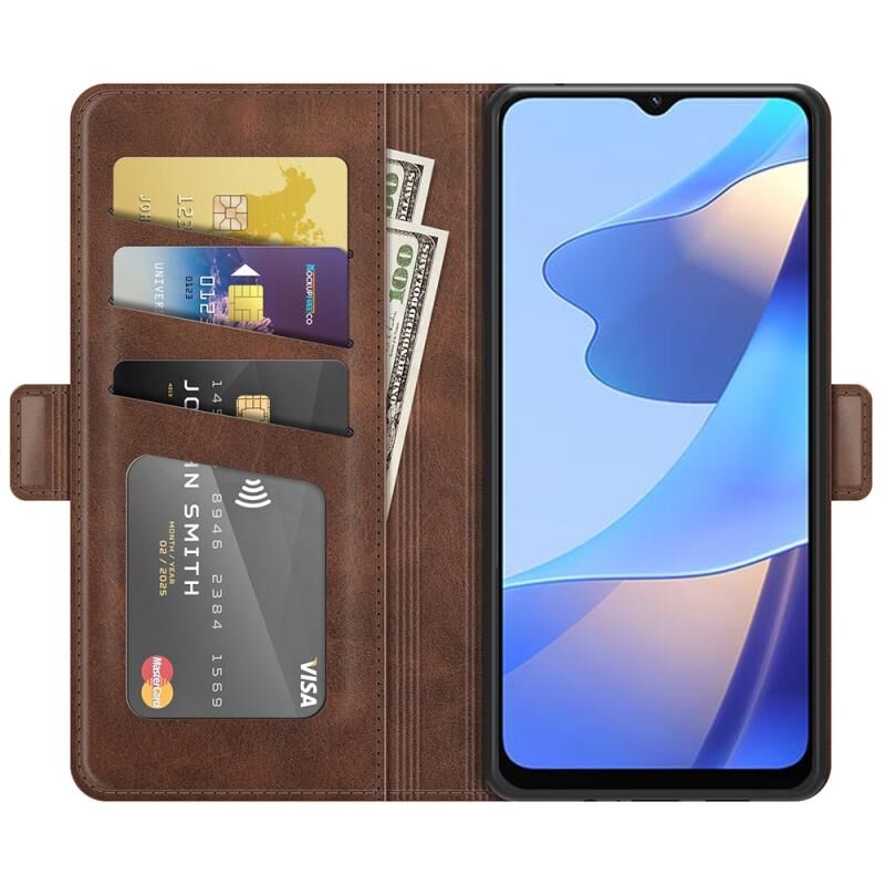Θήκη δέρματος οριζόντιας αναδίπλωσης με μαγνητική αγκράφα διπλής όψης για OPPO A16 με βάση στήριξης & υποδοχές καρτών & πορτοφόλι (Καφέ)