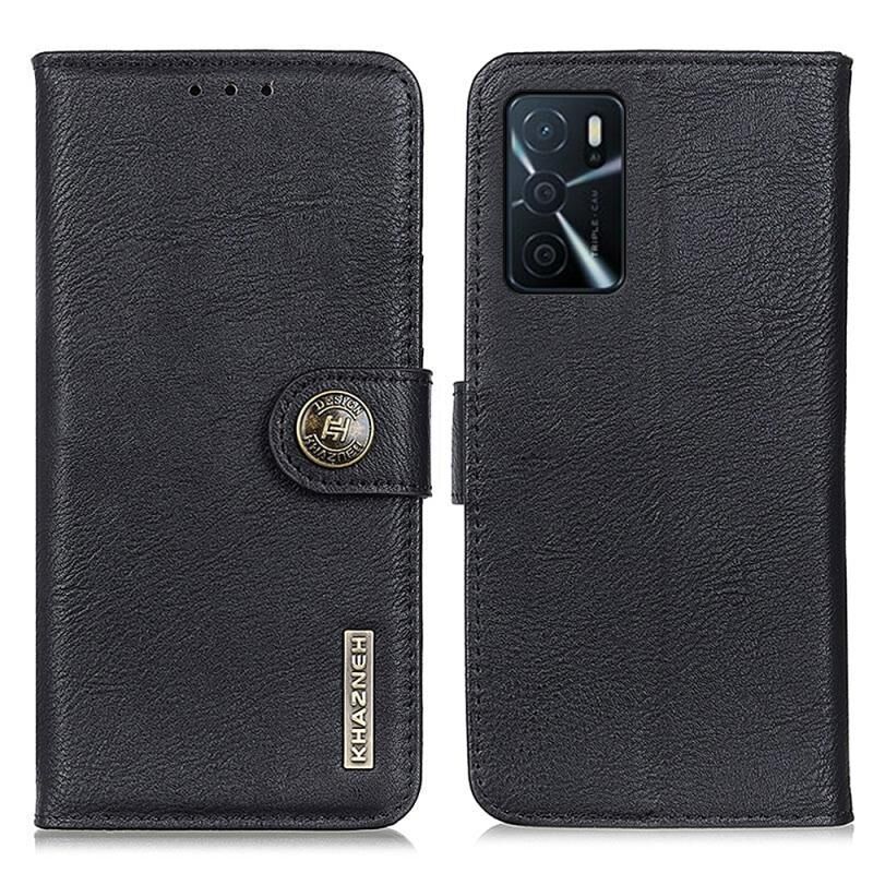 Για OPPO A16 KHAZNEH Cowhide υφή οριζόντια Flip δερμάτινη θήκη με κάτοχο & υποδοχές για κάρτες & πορτοφόλι (μαύρο)