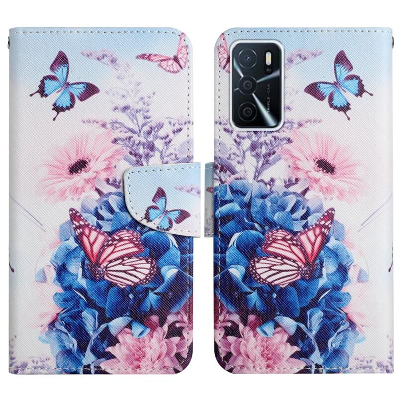 Θήκη τηλεφώνου από δέρμα με σχέδιο και αναδιπλούμενο καπάκι για OPPO A16 (Κόκκινο Λουλούδι)