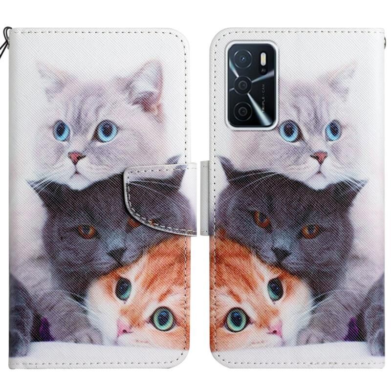 Θήκη τηλεφώνου από δέρμα με σχέδιο και αναδιπλούμενο καπάκι για OPPO A16 (Τρία Γατάκια)