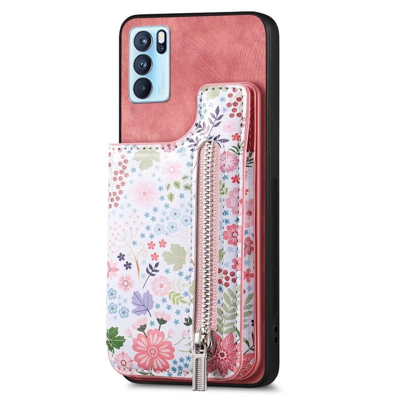 Για OPPO A16 Ρετρό ζωγραφισμένο φερμουάρ πορτοφόλι πίσω τηλέφωνο υπόθεση (ροζ)