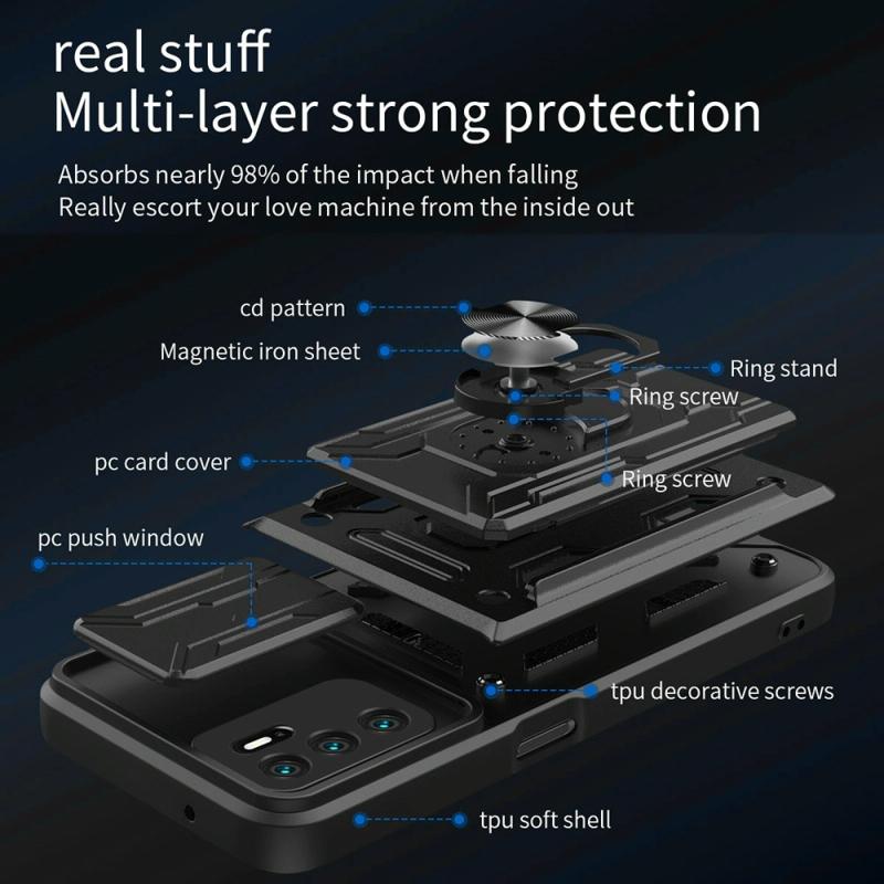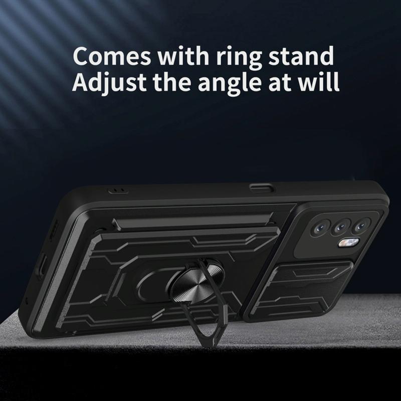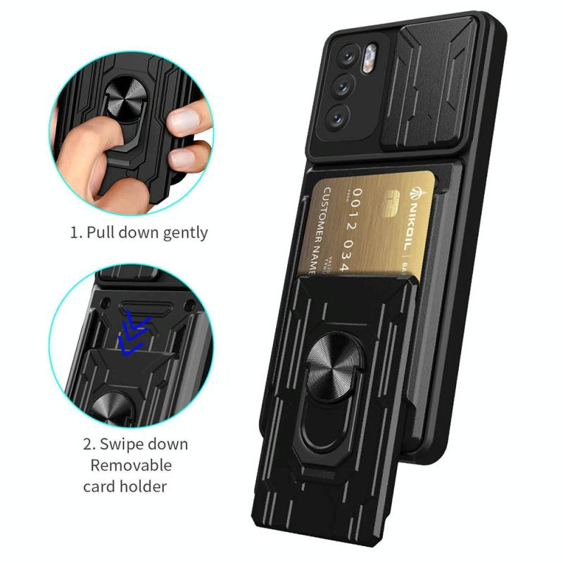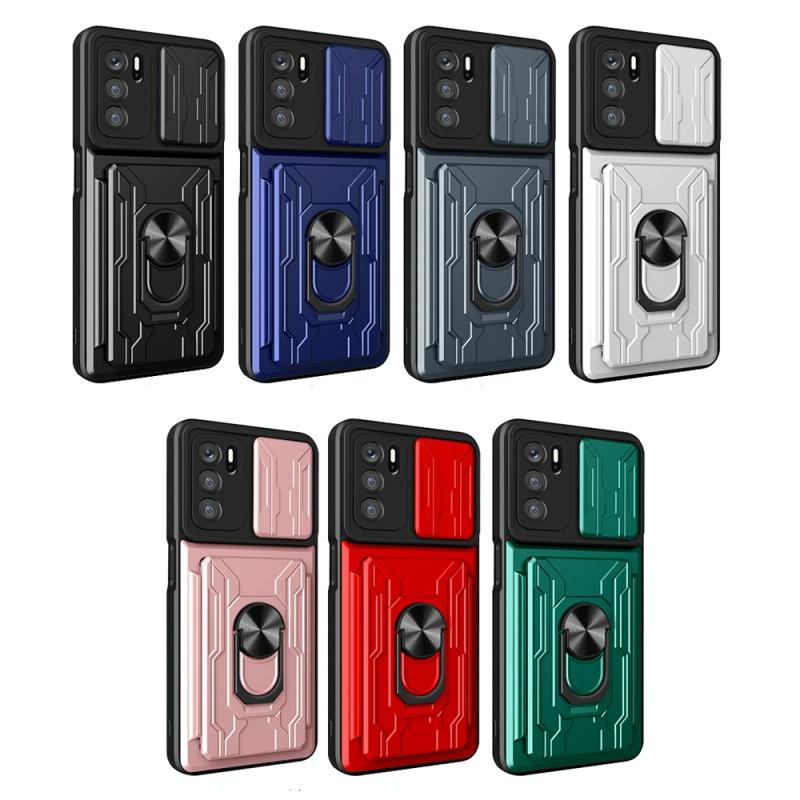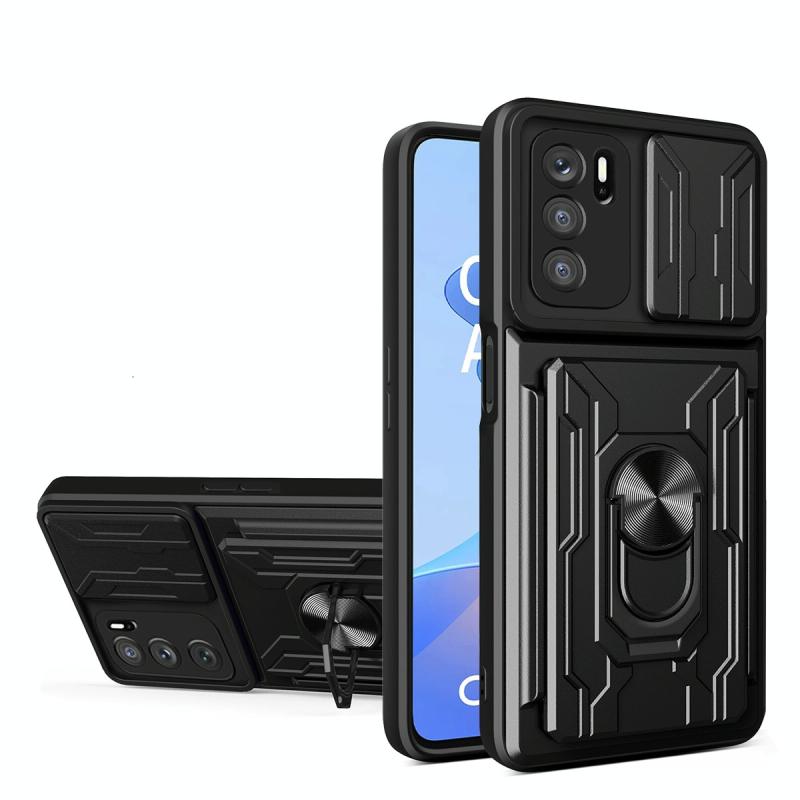 Θήκη κινητού τηλεφώνου για OPPO A16 με συρόμενο Camshield, κατασκευασμένη από TPU+PC με υποδοχή κάρτας (Μαύρο)