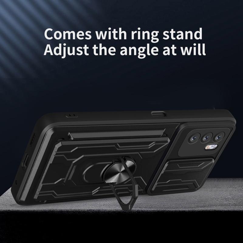 Θήκη κινητού τηλεφώνου για OPPO A16 με συρόμενο Camshield, κατασκευασμένη από TPU+PC με υποδοχή κάρτας (Μαύρο)