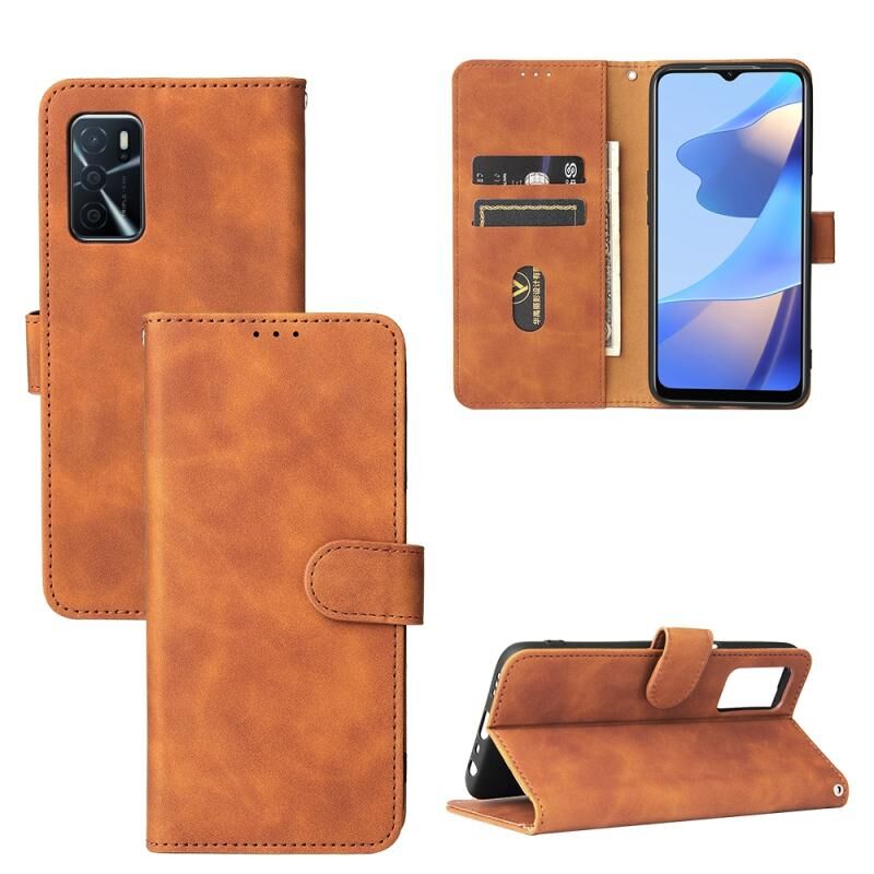 Για OPPO A16 Αμιγές χρώμα δέρμα αίσθηση μαγνητική πόρπη οριζόντια Flip μοσχάρι υφή PU δέρμα υπόθεση με κάτοχο & υποδοχές καρτών & πορτοφόλι (καφέ)