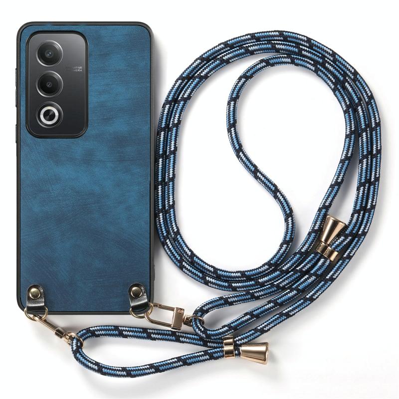 For OPPO A16 Vintage Leather PC Back Cover Phone Case with Crossbody Strap(Blue)