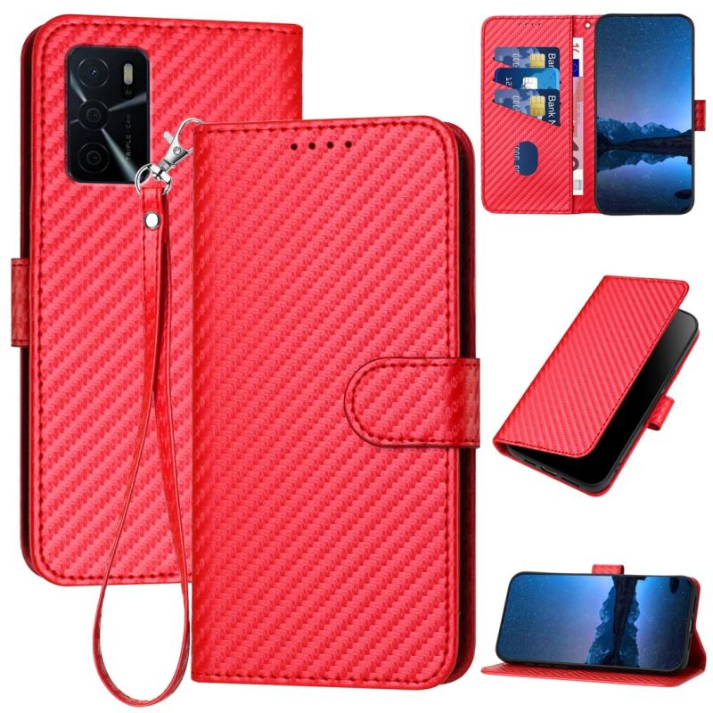 For OPPO A16 YX0070 Carbon Fiber Buckle Leather Phone Case with Lanyard(Red)