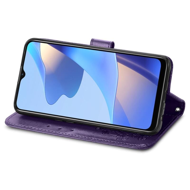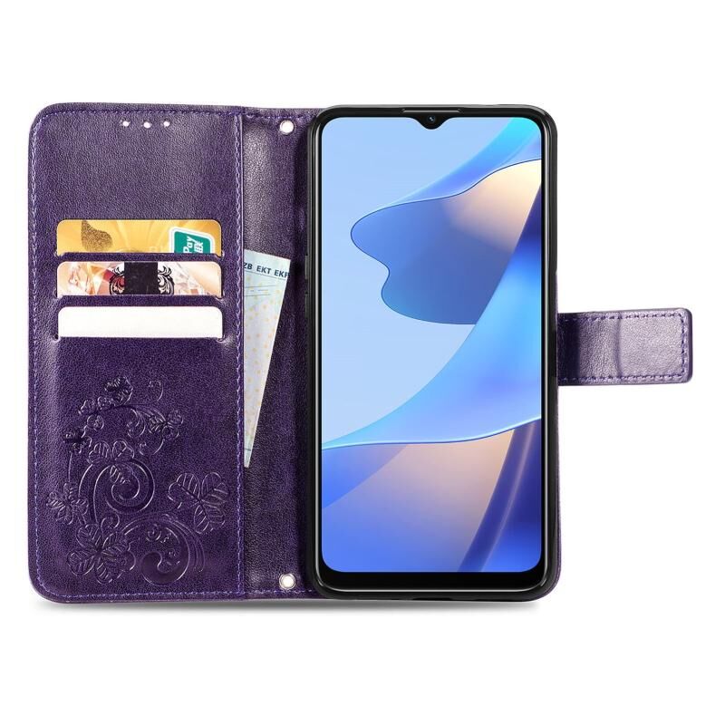 Για OPPO A16e Τέσσερα φύλλα κούμπωμα ανάγλυφο πόρπη δερμάτινη θήκη τηλεφώνου (Μωβ)