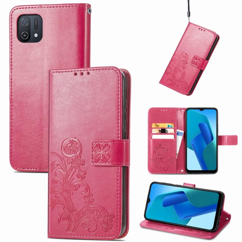 Για OPPO A16K τετράφυλλο κούμπωμα ανάγλυφο πόρπη δερμάτινη θήκη τηλεφώνου (ματζέντα)