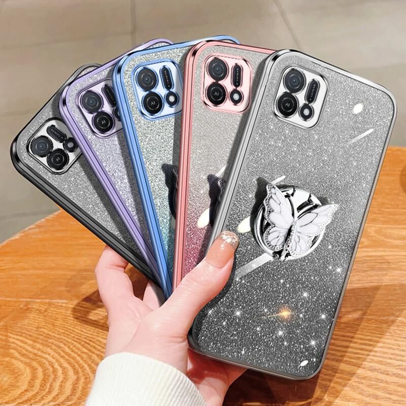 Για OPPO A16k επιμεταλλωμένο βαθμίδα Glitter πεταλούδα κάτοχος TPU τηλέφωνο υπόθεση (Μπλε Σιέρρα)
