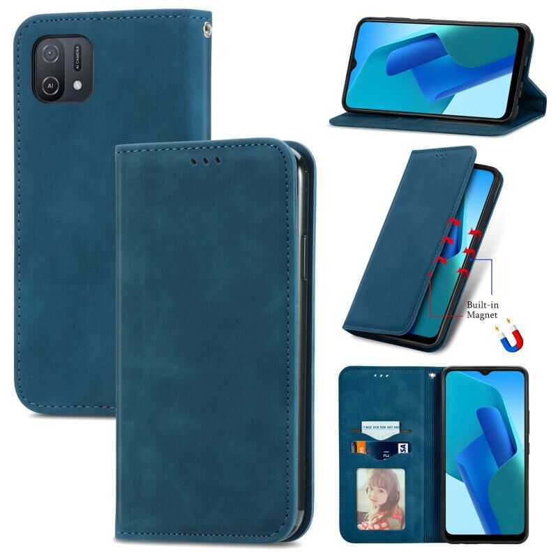Για OPPO A16K Ρετρό δέρμα αίσθηση μαγνητική Flip δερμάτινη θήκη (Μπλε)