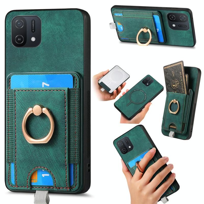 Για OPPO A16K Ρετρό Splitable μαγνητική κάρτα τσάντα δερμάτινη θήκη τηλεφώνου (πράσινο)