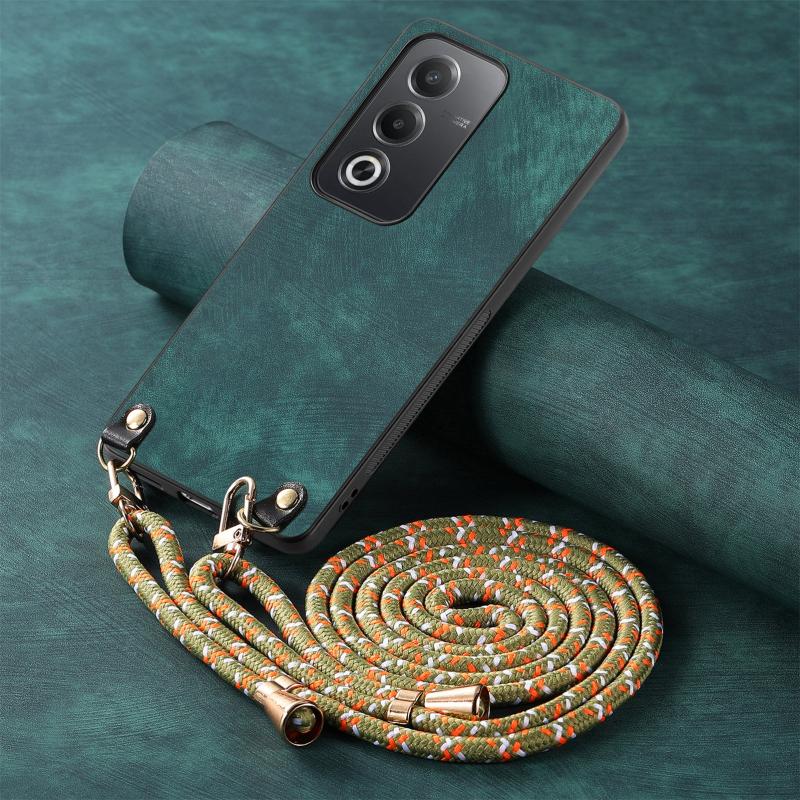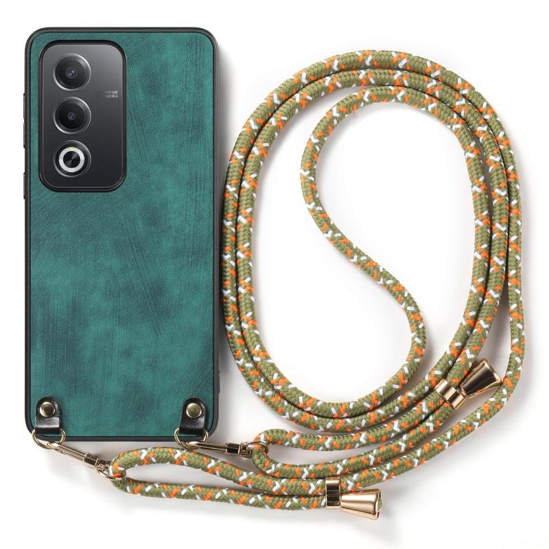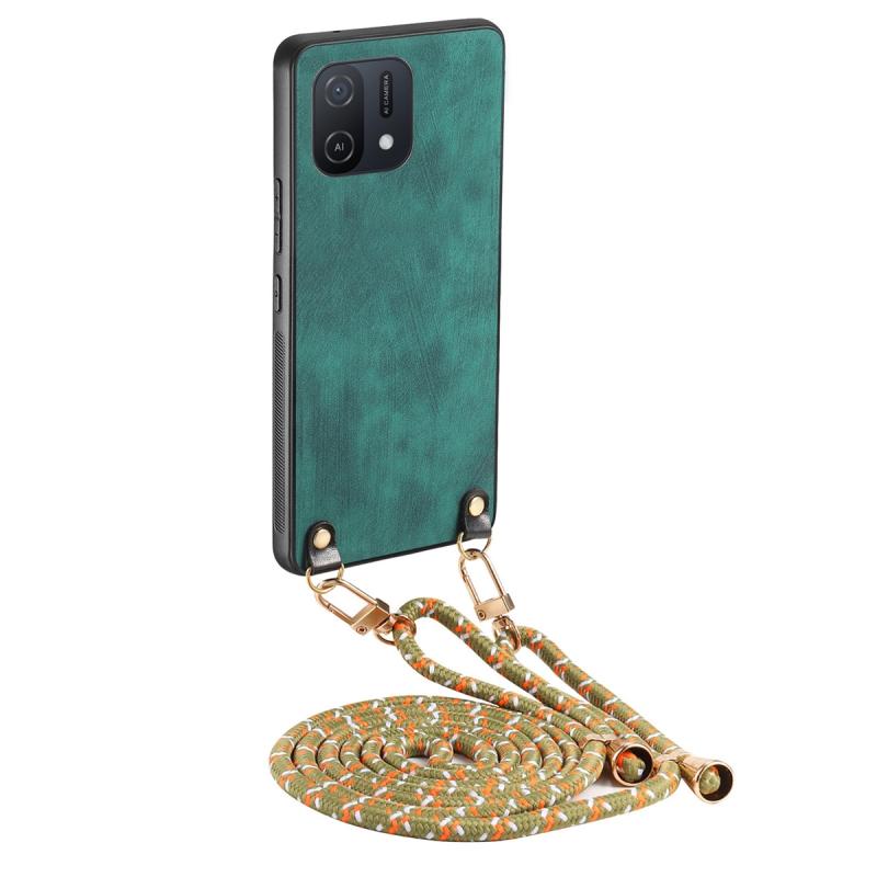 Θήκη κινητού τηλεφώνου OPPO A16K από δέρμα vintage και PC με λουρί χιαστί (πράσινο)