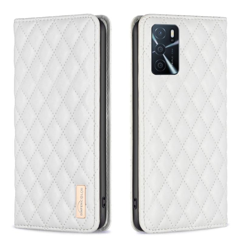 Θήκη τηλεφώνου τύπου flip από δέρμα με μαγνητικό σχέδιο διαμαντένιο πλέγμα για OPPO A16s / A16 / A54s / A55 5G / A54 4G (Μωβ)