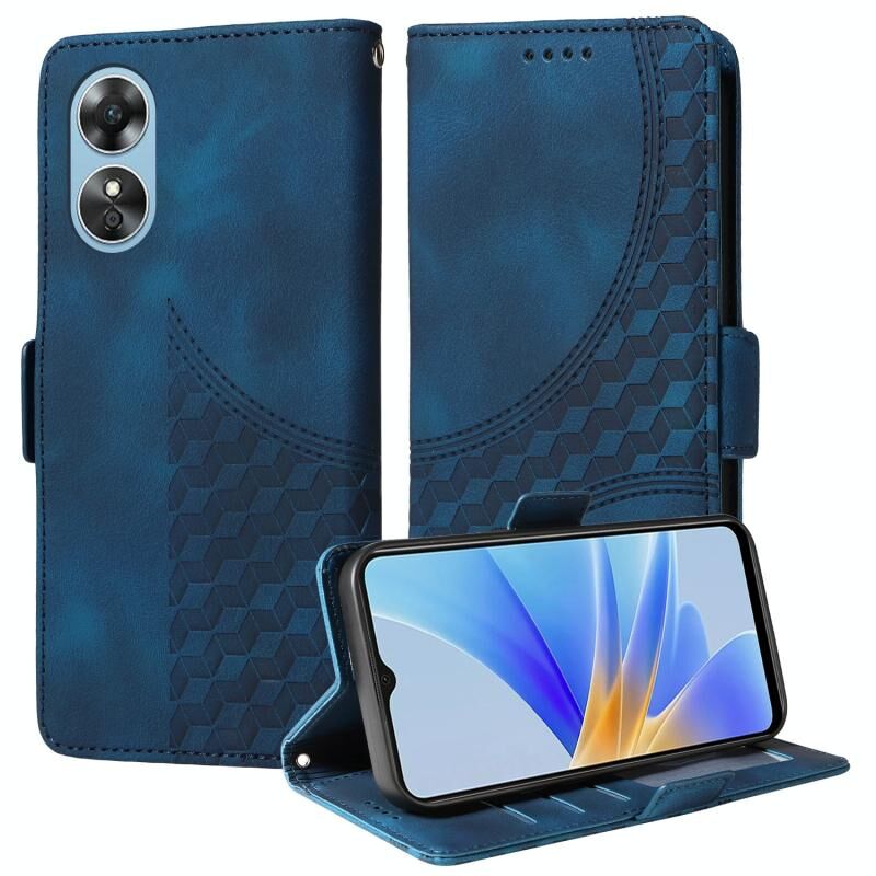 Για OPPO A17 4G / A17K ανάγλυφο Rhombus Starry δερμάτινη θήκη τηλεφώνου (Μπλε)
