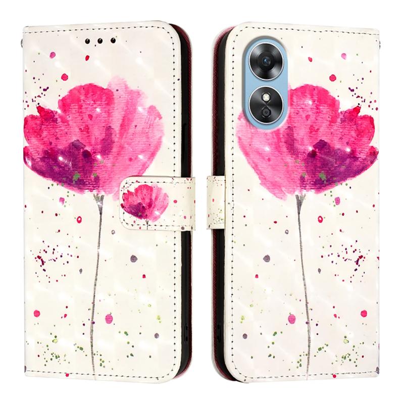 For OPPO A17 4G Global / A17k 3D Painting Horizontal Flip Leather Phone Case(Flower)