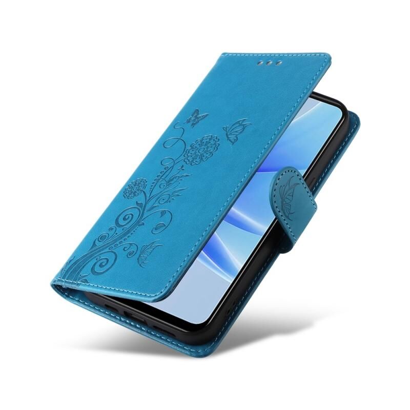 Θήκη τηλεφώνου από δέρμα με ανάγλυφα σχέδια πεταλούδας και λουλουδιών για OPPO A17 4G Global / A17k Global (Μωβ)