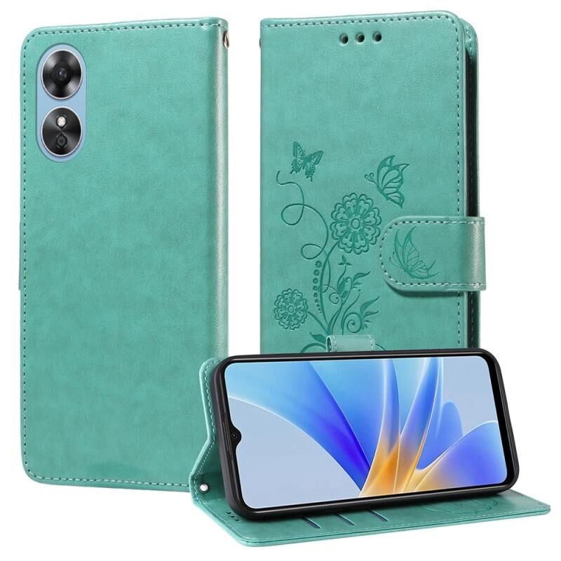 Θήκη τηλεφώνου από δέρμα με ανάγλυφα σχέδια πεταλούδας και λουλουδιών για OPPO A17 4G Global / A17k Global (Μωβ)