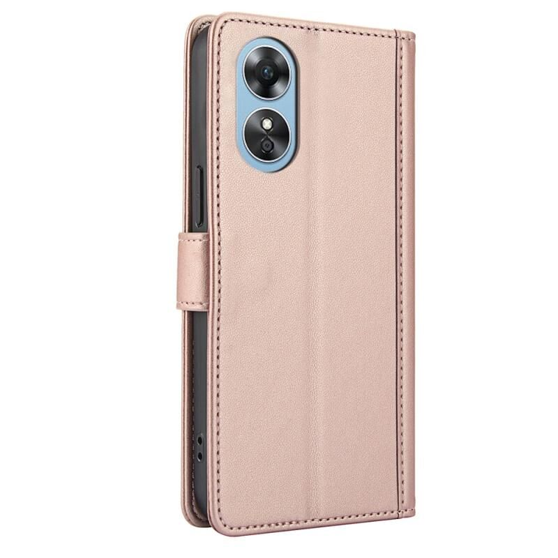 Για OPPO A17 4G Global / A17k Skin Feel Pure Color Card Slots δερμάτινη θήκη τηλεφώνου με διπλό κορδόνι (Ροζ χρυσός)