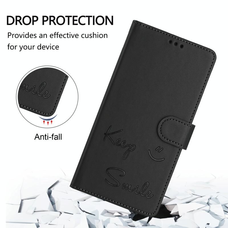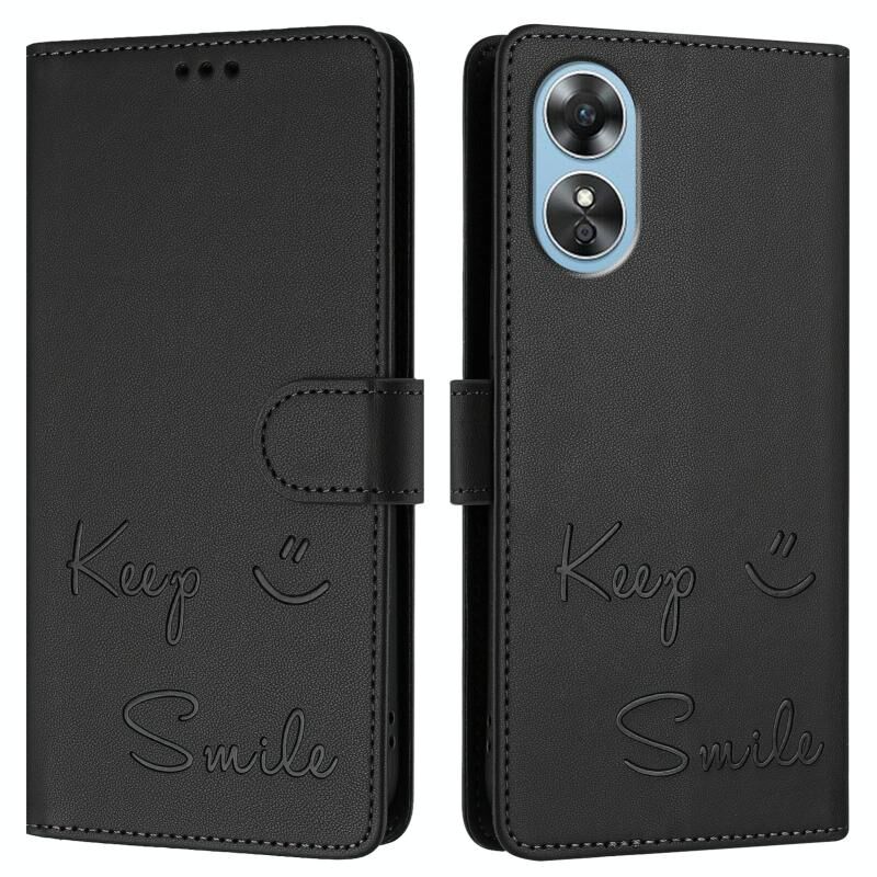 Για OPPO A17 4G Global / A17K Χαμόγελο ανάγλυφο RFID δερμάτινη θήκη τηλεφώνου (Μαύρο)