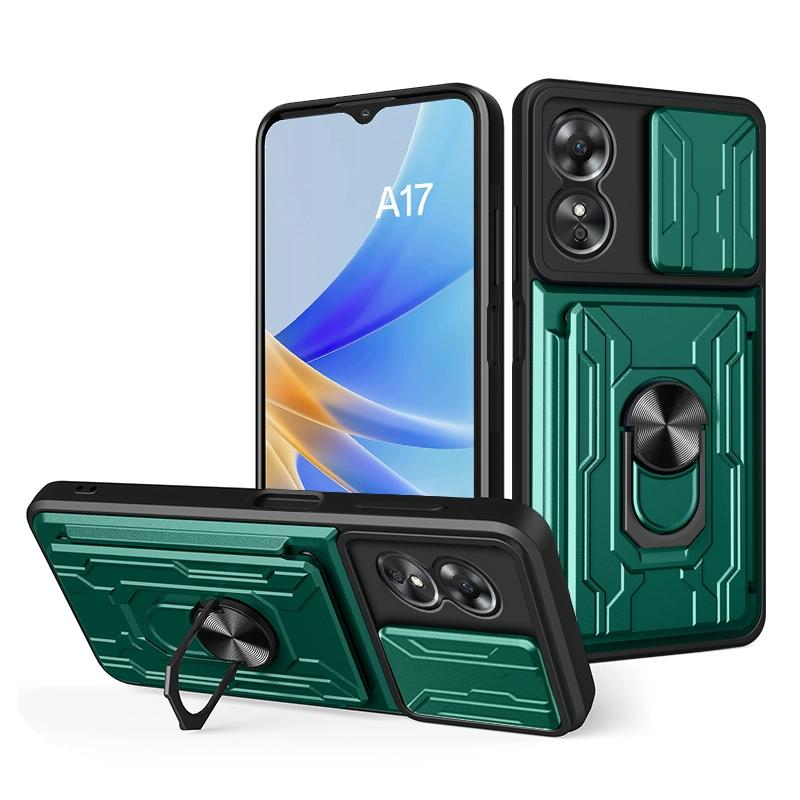 Θήκη κινητού τηλεφώνου για OPPO A17 4G με συρόμενο προστατευτικό κάμερας Camshield, κατασκευασμένη από TPU+PC με υποδοχή κάρτας (Χρυσορόδινο).