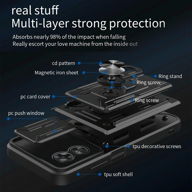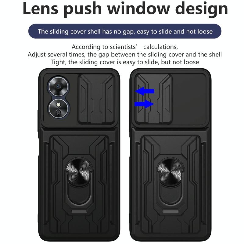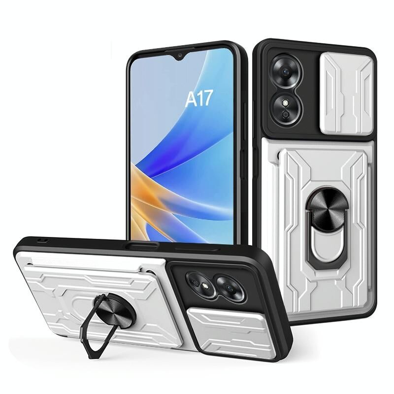 Θήκη κινητού τηλεφώνου για OPPO A17 4G με συρόμενο προστατευτικό κάμερας Camshield, κατασκευασμένη από TPU+PC με υποδοχή κάρτας (Χρυσορόδινο). (Λευκό)