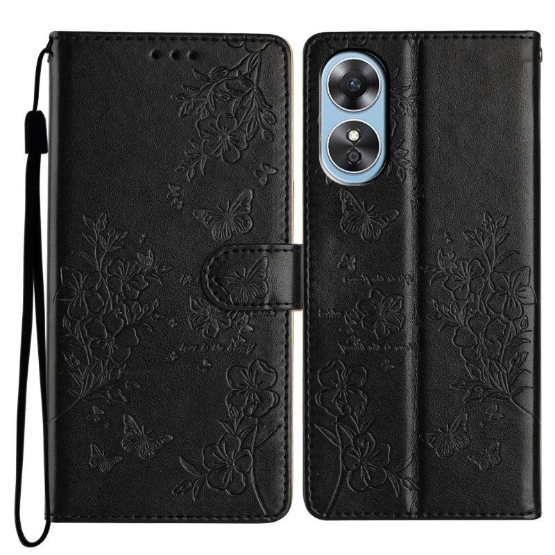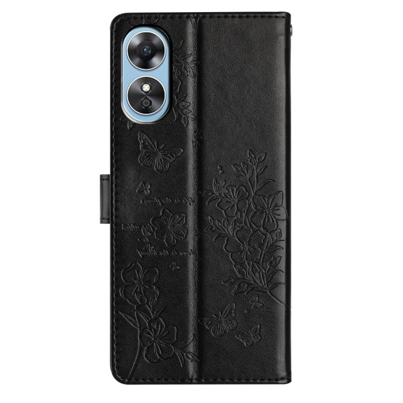 For OPPO A17 Butterflies and Flowers Leather Phone Case(Black)