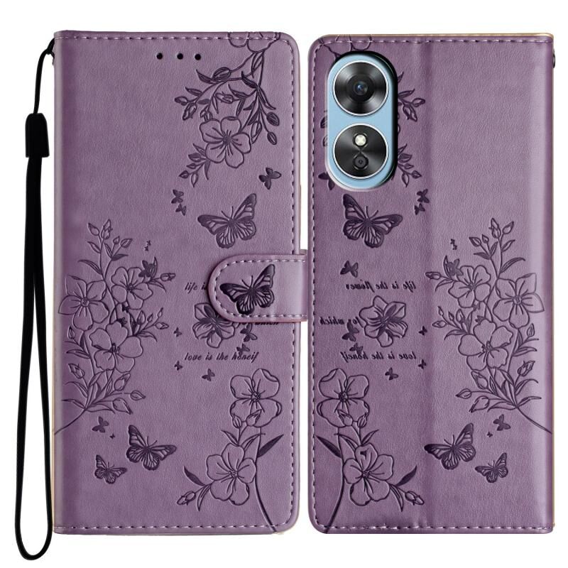Θήκη τηλεφώνου από δέρμα με πεταλούδες και λουλούδια για OPPO A17 (Χρυσό)