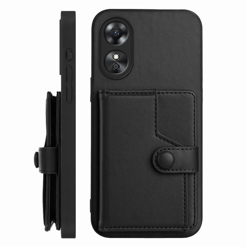 For OPPO A17 Button Card Bag RFID Anti-theft Phone Case(Black)