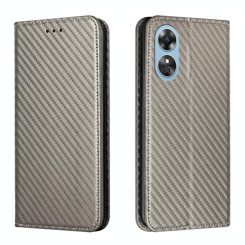 Για OPPO A17 Carbon Fiber Texture Μαγνητική Flip δέρμα τηλέφωνο υπόθεση (γκρι)