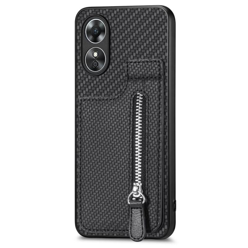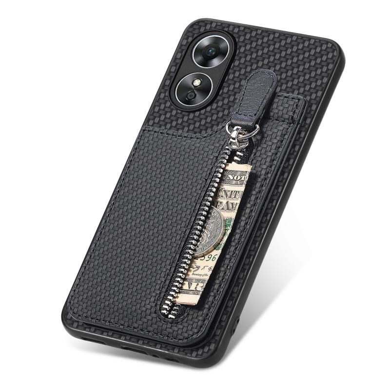 Για OPPO A17 Carbon Fiber Κάθετη Flip φερμουάρ τηλέφωνο υπόθεση (μαύρο)