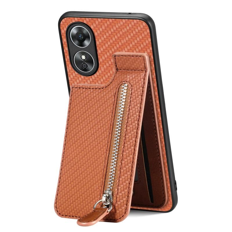Για OPPO A17 Carbon Fiber Κάθετη Flip φερμουάρ τηλέφωνο υπόθεση (καφέ)