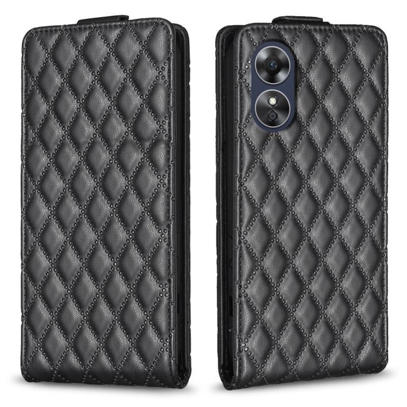 For OPPO A17 Diamond Lattice Vertical Flip Leather Phone Case(Black)
