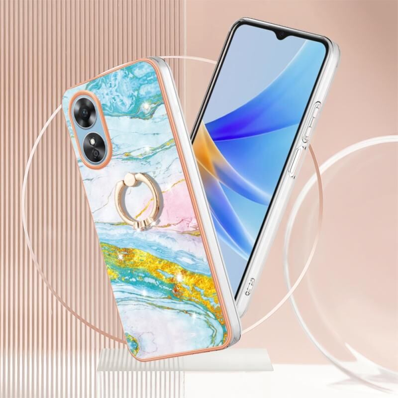 Θήκη κινητού τηλεφώνου OPPO A17 με ηλεκτρολυτική μαρμάρινη τεχνολογία IMD και δακτύλιο στήριξης (Μωβ 001)
