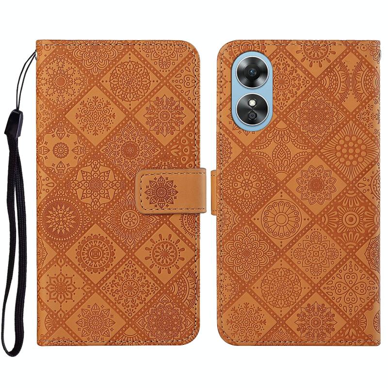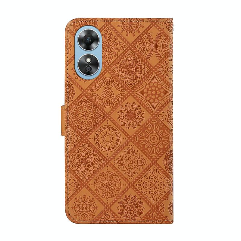 Θήκη τηλεφώνου δερμάτινη με ανάγλυφο σχέδιο εθνοτικού στυλ για OPPO A17 (Μαύρο)