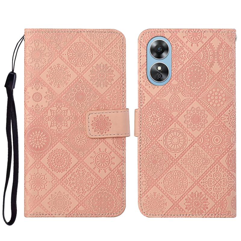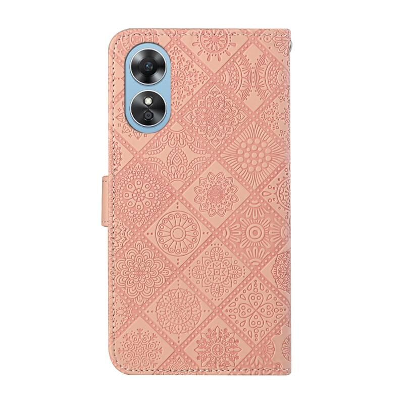 Θήκη τηλεφώνου δερμάτινη με ανάγλυφο σχέδιο εθνοτικού στυλ για OPPO A17 (Μαύρο)