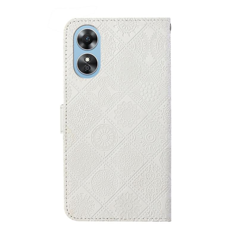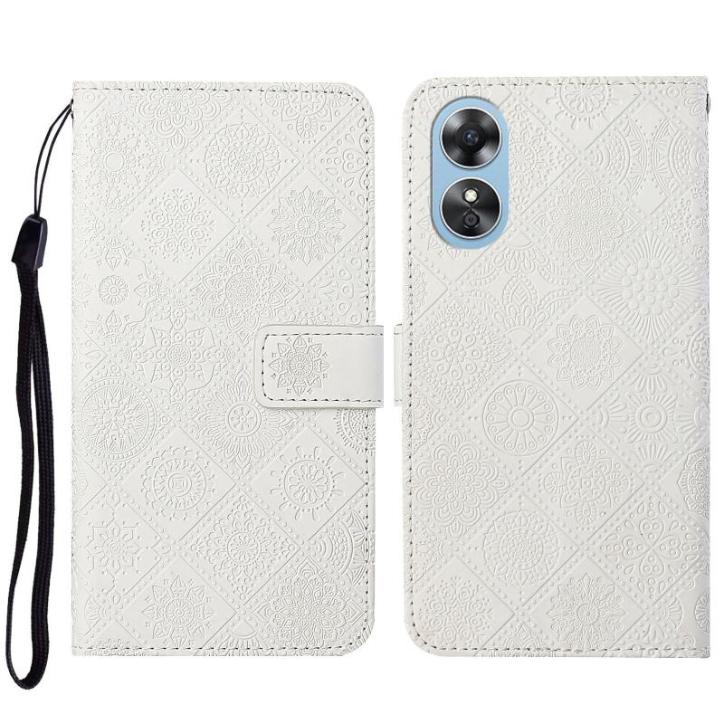 Θήκη τηλεφώνου από δέρμα με ανάγλυφο εθνοτικό σχέδιο για OPPO A17 (Μωβ)
