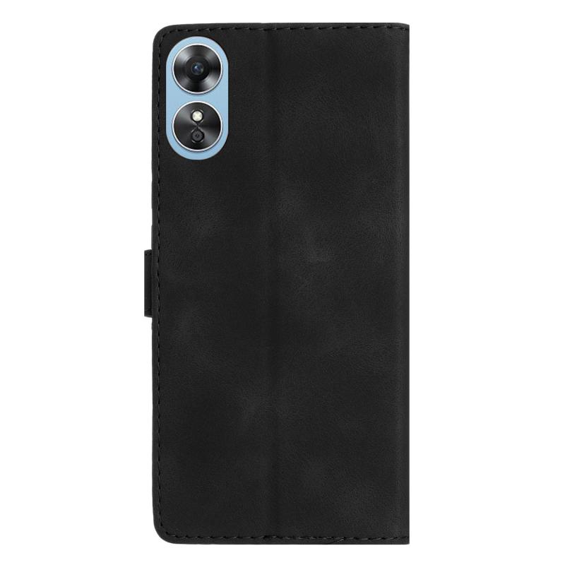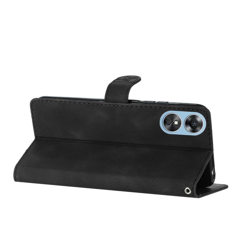Θήκη τηλεφώνου δερμάτινη με ανάγλυφο σχέδιο λουλουδιών και πεταλούδας για OPPO A17 (Μαύρο)
