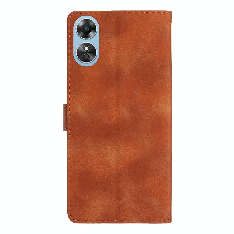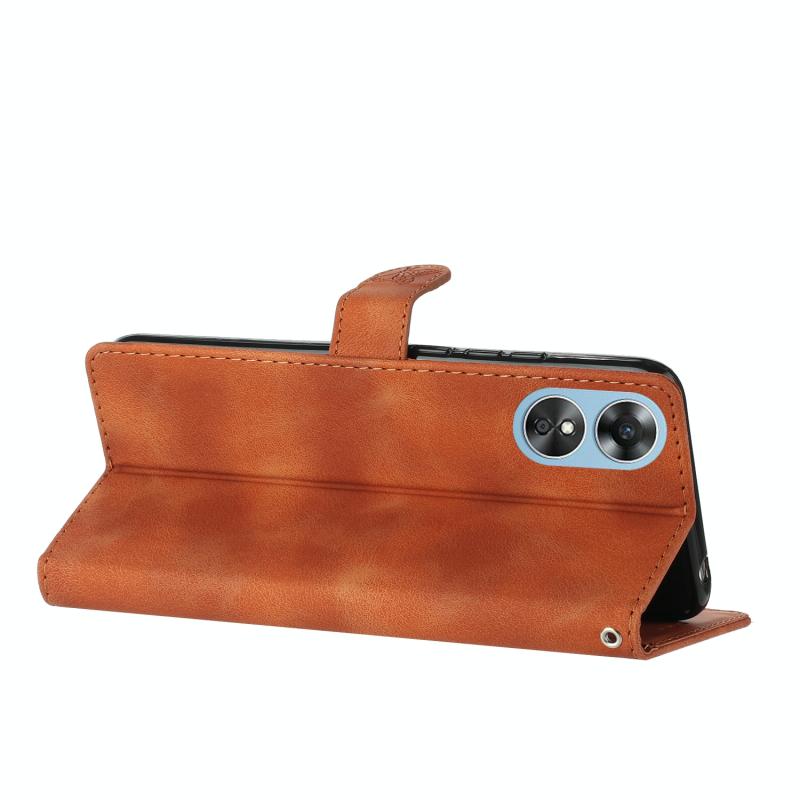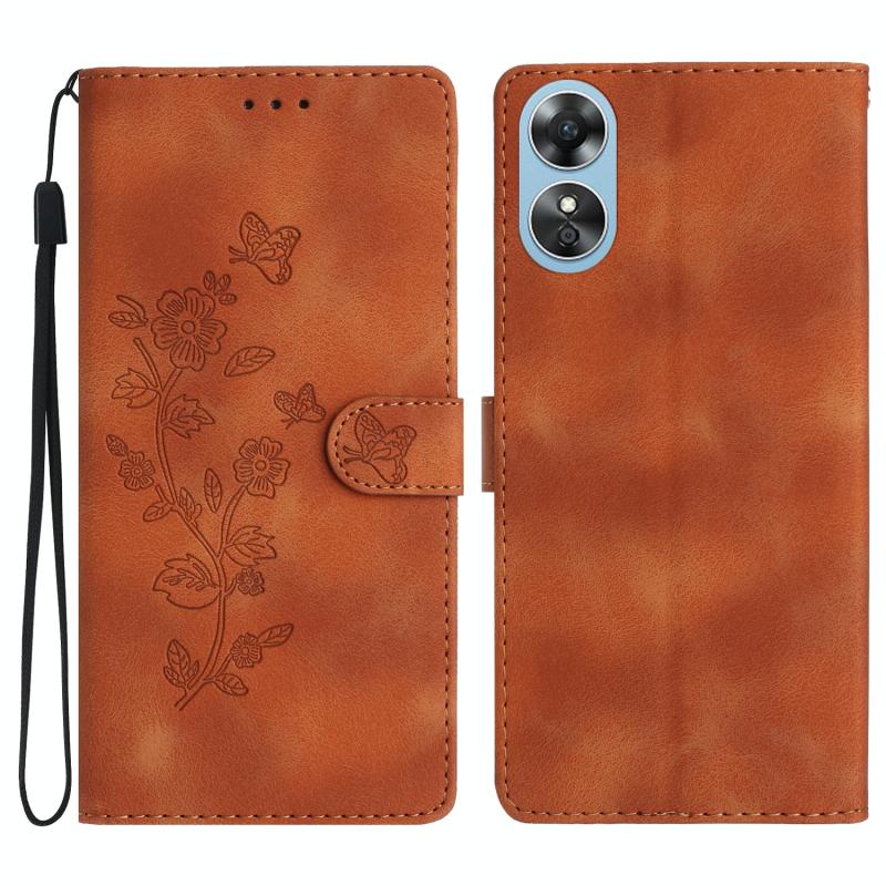 Θήκη τηλεφώνου δερμάτινη με ανάγλυφο σχέδιο λουλουδιών και πεταλούδας για OPPO A17 (Καφέ)