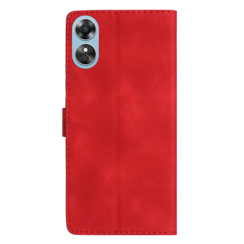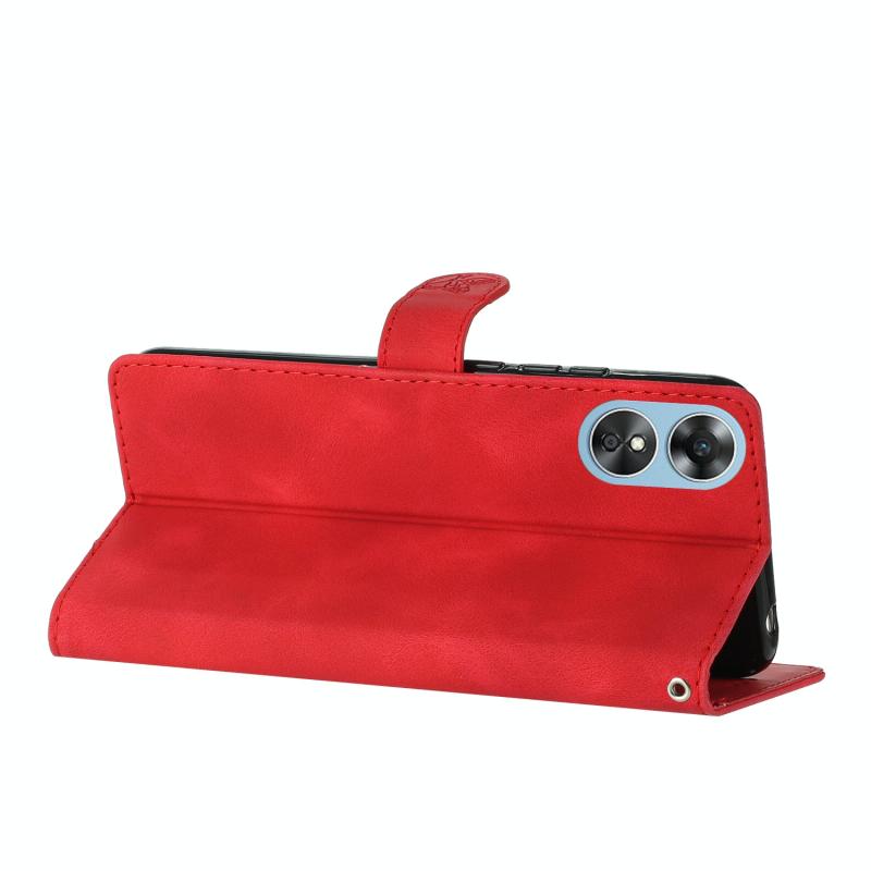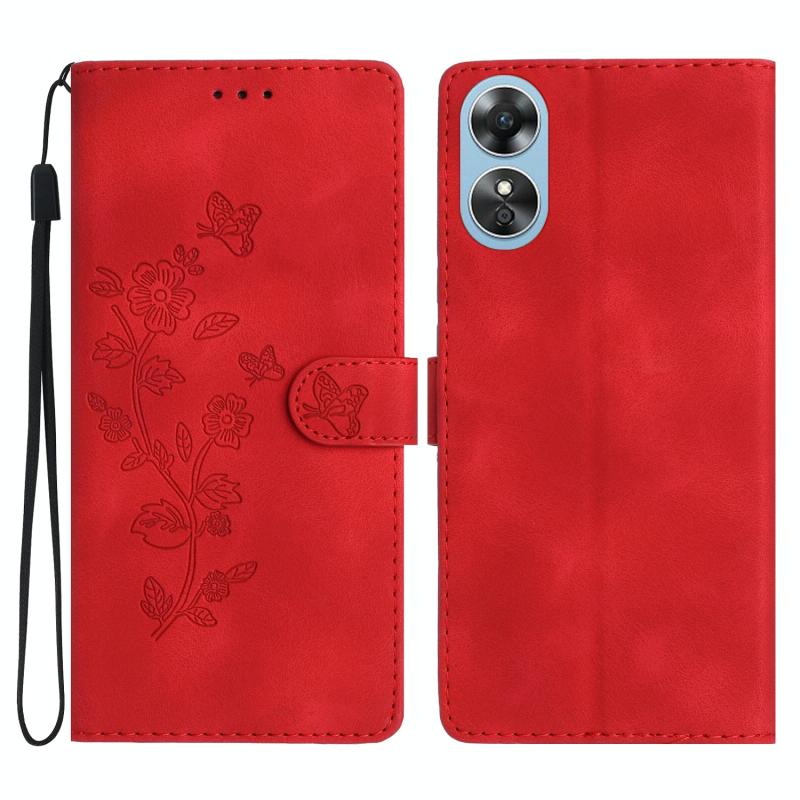 Θήκη τηλεφώνου δερμάτινη με ανάγλυφο σχέδιο λουλουδιών και πεταλούδας για OPPO A17 (Κόκκινο)